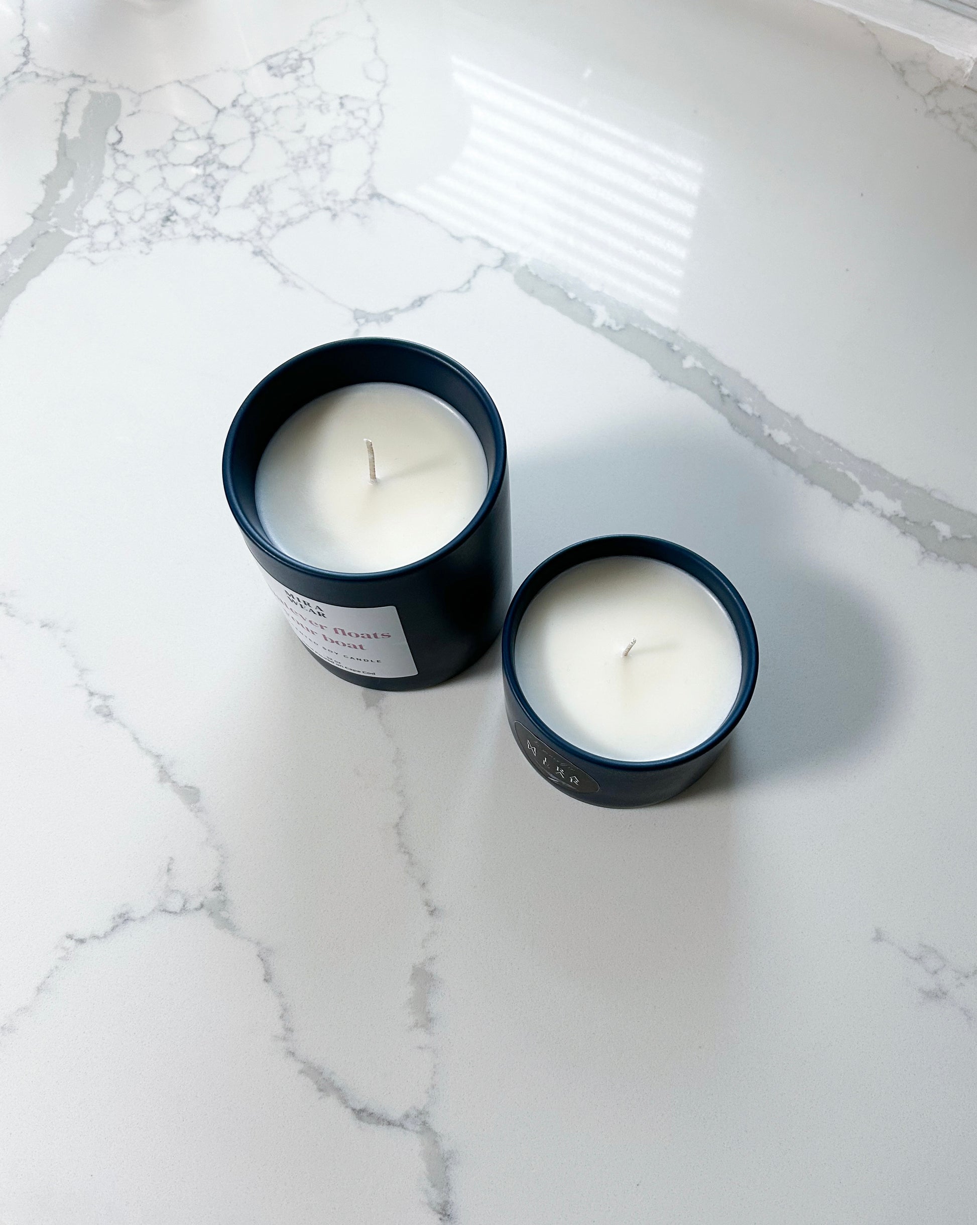 Scented Soy Candle in a Lux Navy Blue Ceramic Jar.